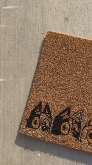 Featuring hand-painted black silhouettes of Bluey, Bingo, Bandit, and Chilli, this coir welcome mat is the perfect blend of playful and practical.